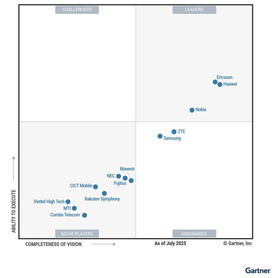 El informe, publicado el 10 de septiembre de 2025, ofrece una visión general del mercado de las capacidades críticas de la infraestructura de la red de acceso de radio (RAN) 5G, basada en cómo los expertos de Gartner evaluaron de forma exhaustiva e independiente a los proveedores que ofrecen soluciones 5G para proveedores de servicios de comunicaciones (CSP) en dos índices: integridad de la visión y capacidad de ejecución.