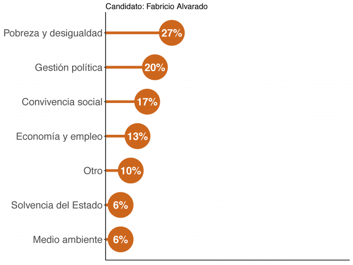 Asimismo, las problemáticas que menos se abordan son solvencia del Estado, o sea, referencias en cuanto a la crisis fiscal actual, y el de medio ambiente. Ambas con 31 propuestas cada una.