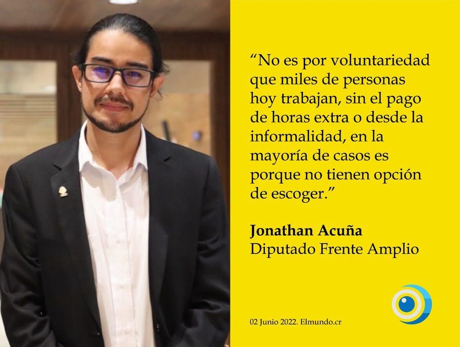 San José, 02 jun (elmundo.cr) – El jefe de fracción del Frente Amplio, Jonathan Acuña, señaló que “no es por voluntariedad que miles de personas hoy trabajan sin seguro”.