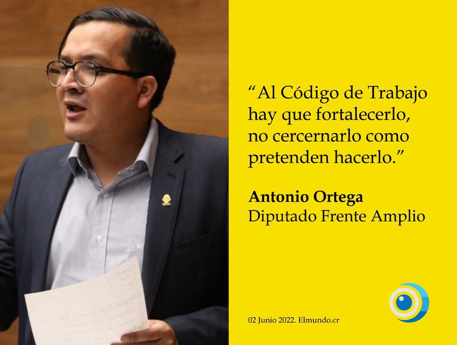 San José, 02 jun (elmundo.cr) – El diputado del Partido Frente Amplio, Antonio Ortega, señaló que “al Código de Trabajo hay que fortalecerlo, no cercenarlo como pretenden hacerlo”.