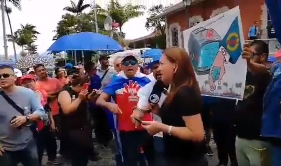 San José, 11 set (elmundo.cr) – Un grupo de manifestantes que se encuentran frente a la Asamblea Legislativa la emprendieron contra los periodistas de canal 7.