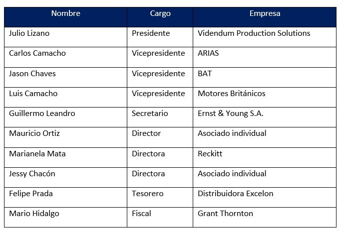 El pasado miércoles 13 de marzo, la Cámara Británica eligió a los miembros de la Junta Directiva para el periodo 2024-2026, ratificando al señor Julio Lizano como presidente, logrando 4 años consecutivos en el cargo. Estos son los miembros elegidos:
