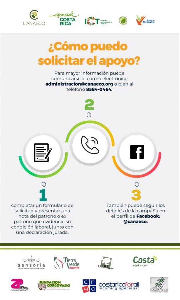 Los interesados en obtener el apoyo deberán escribir al correo de info@canaeco.org, completar un formulario de solicitud y presentar una nota del patrono o expatrono que evidencie su condición laboral, junto con una declaración jurada.