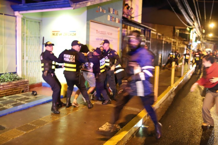 En la revuelta la oficiales de la Fuerza Pública golpearon a la periodista de El Mundo, Karla Pérez González a la que le tiraron al suelo el teléfono con que transmitía en vivo los hechos. Igual verte corrió el periodista del Semanario Universidad, Javier Cordoba.