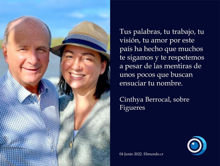 San José, 04 jun (elmundo.cr) – La esposa del expresidente José María Figueres, Cinthya Berrocal, afirmó sobre el exmandatario “tu impacto en este país y en muchas personas es gigantesco, quienes lo reconocemos te admiramos”.