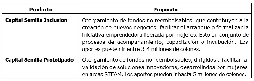 Como parte de este objetivo, para este año se están asignado aproximadamente ₡425 millones en convocatorias de capital semilla exclusivas para mujeres.