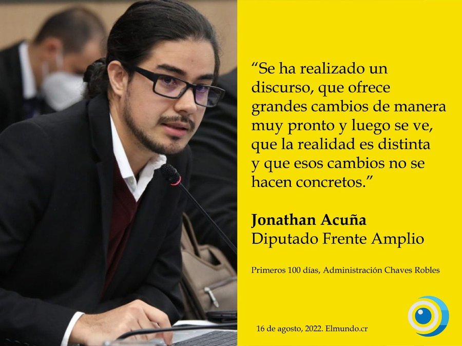 San José, 16 ago (elmundo.cr) – El jefe de fracción del Partido Frente Amplio, Jonathan Acuña, señaló que “han sido unos 3 primeros meses, donde esta administración ha encontrado en varias ocasiones, como algunas de sus decisiones son incongruentes y contrarias con nuestro marco jurídico”.