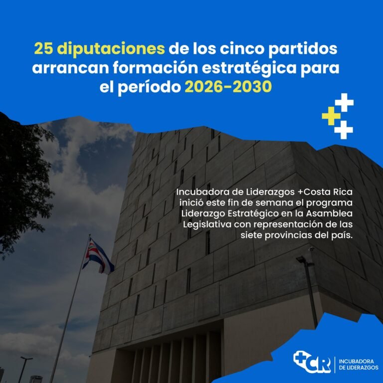 San José, 06 mar (elmundo.cr) – El pasado fin de semana dio inicio el programa Liderazgo Estratégico en la Asamblea Legislativa de Costa Rica, una iniciativa impulsada por la Incubadora de Liderazgos +Costa Rica, en la que se han inscrito 25 diputaciones electas para el período 2026–2030.