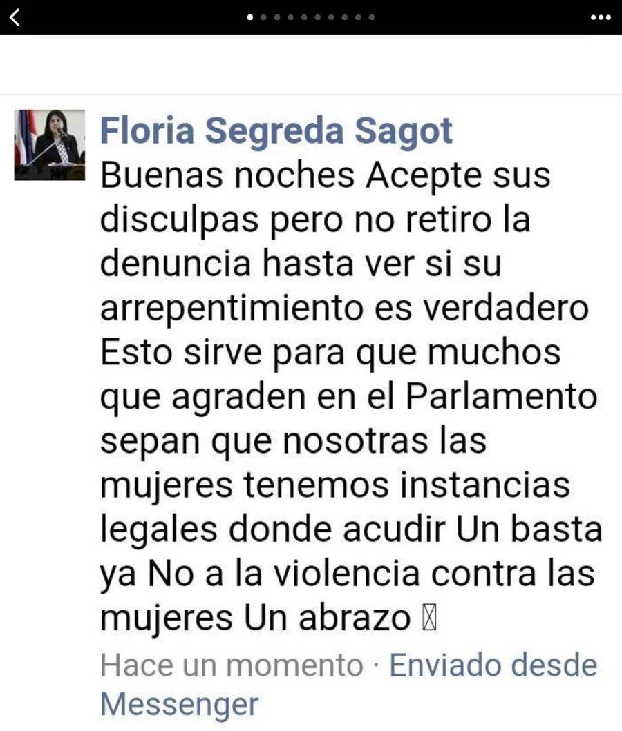 La Nación reveló esta tarde un mensaje privado de la legisladora donde le decía a una amiga que no retiraría la denuncia hasta que no sintiera ‘arrepentimiento verdadero’.