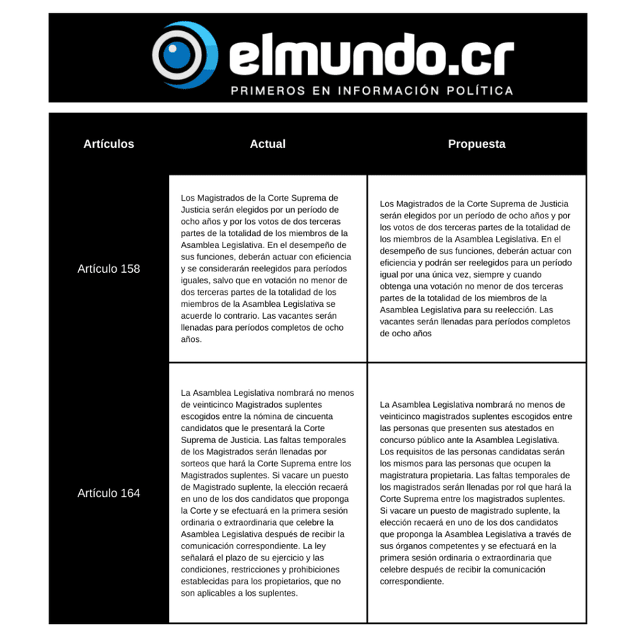 San José, 18 may (elmundo.cr) – El diputado del Partido Unidad Social Cristiana, Leslye Bojorges, presentó un texto sustitutivo al proyecto de ley Reforma de Varios Artículos de la Constitución Política, expediente 20.893; el cual propone que los magistrados se puedan reelegir únicamente una vez, eliminando la reelección automática.