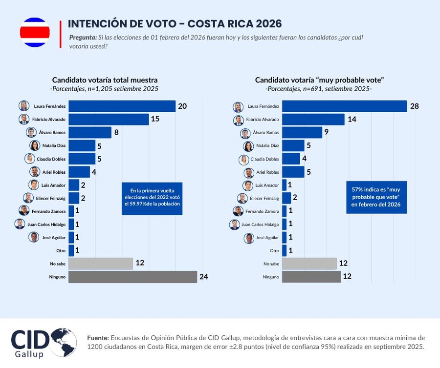 San José, 12 sep (elmundo.cr) – La candidata presidencial de Pueblo Soberano, Laura Fernández, lidera la intención de voto a poco más de cuatro meses de las elecciones nacionales, según el último estudio de CID-Gallud.