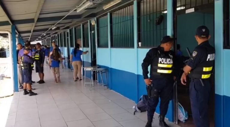 En el Liceo Académico de Ciudad Neily los estudiantes tuvieron que realizar la prueba de Bachillerato mientras que oficiales de la Fuerza Pública se mantenían custodiando las puertas de las aulas.