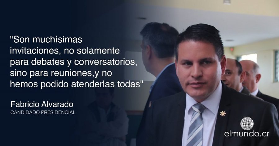 San Pedro, 5 mar (elmundo.cr)- El candidato presidencial Fabricio Alvarado manifestó que priorizará ‘escuchar a la gente y sus necesidades’ antes que participación en debates y conversatorios.