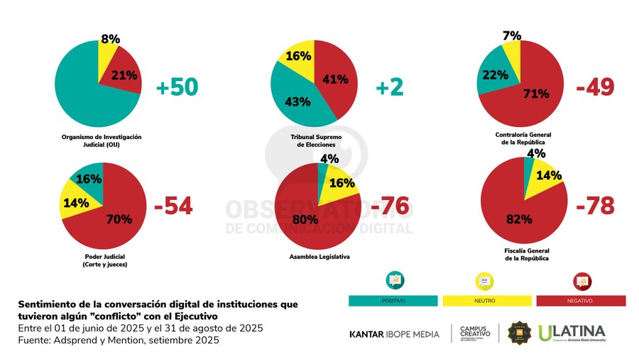 El informe señala que las tensiones entre el Poder Ejecutivo y la Fiscalía General de la República, el Tribunal Supremo de Elecciones (TSE), el Poder Judicial, la Asamblea Legislativa y la Contraloría General de la República marcaron la discusión digital.