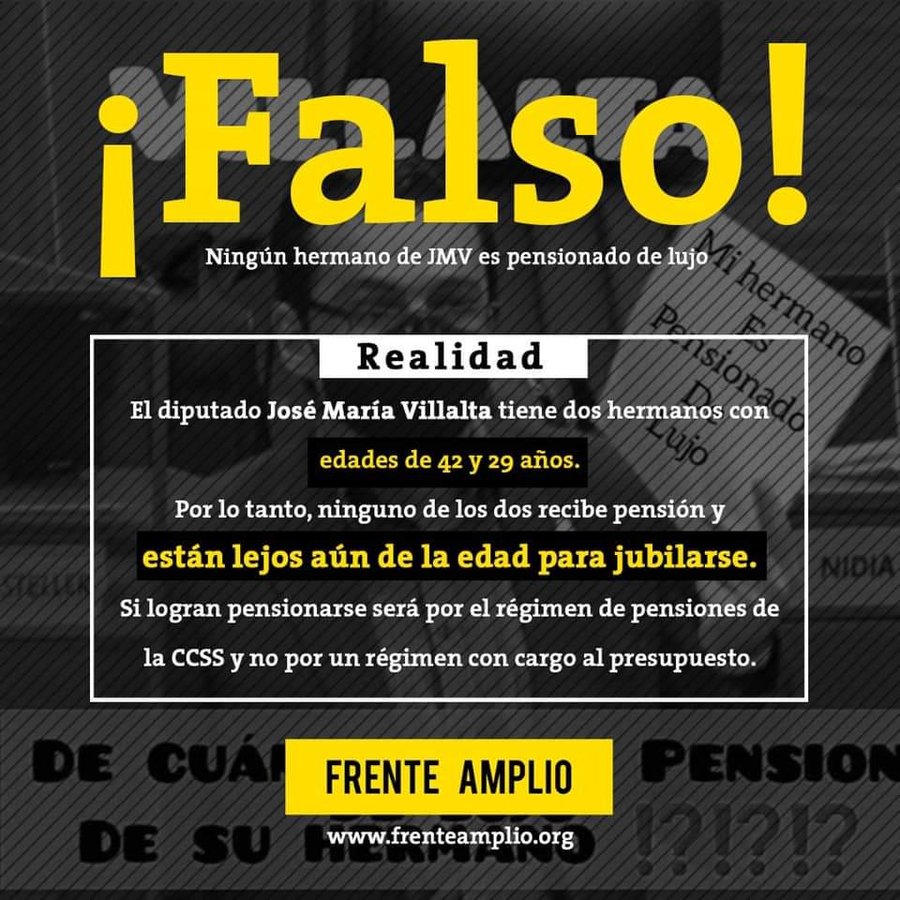 Desde la agrupación aseveraron que es “¡Falso!, ningún hermano de José María Villalta es pensionado de lujo”.