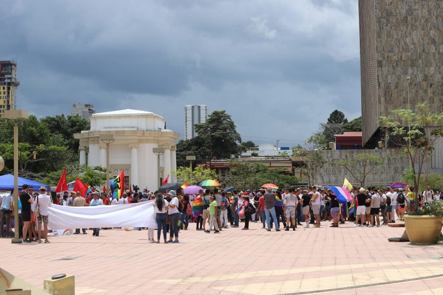 San José, 4 ago (elmundo.cr) – Con la consigna #LlenemosLaCorteDeAmor se plantaron decenas de personas esta mañana en la Plaza de la Justicia para pedir matrimonio igualitario.