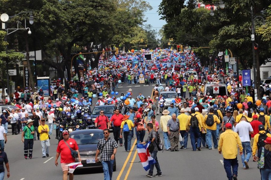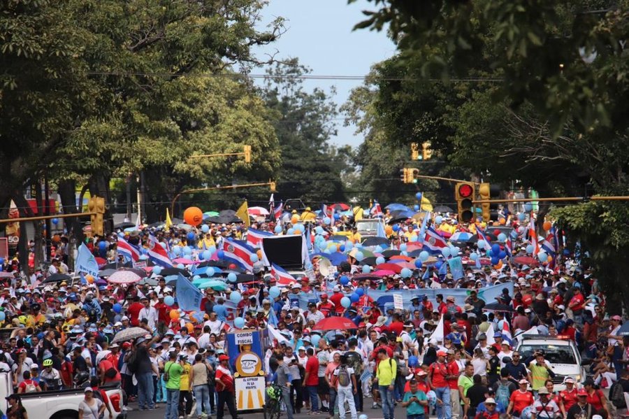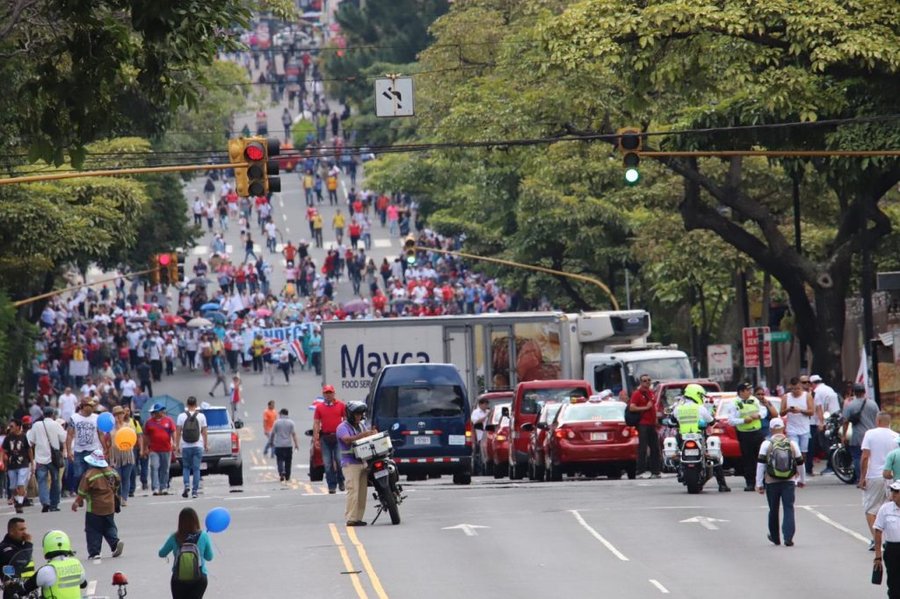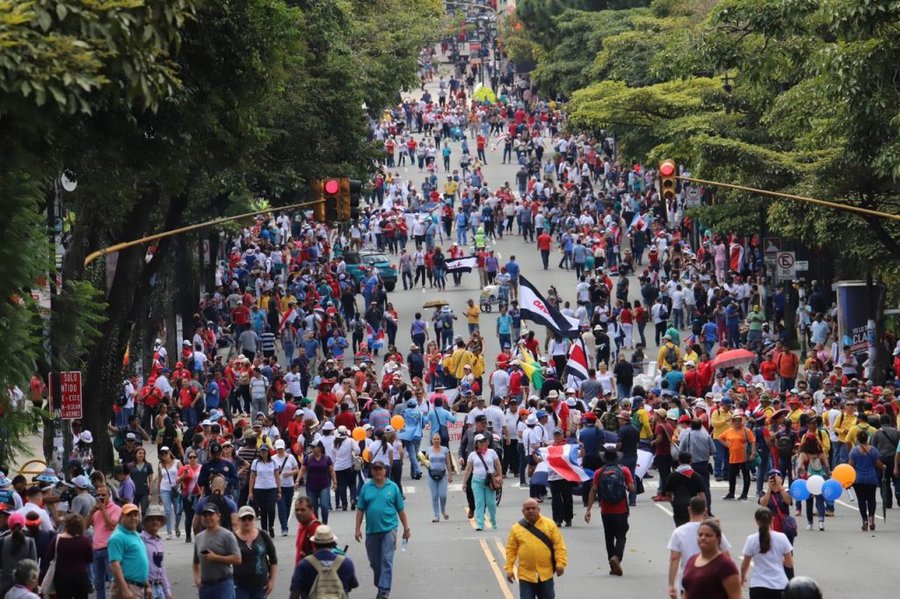 San José, 12 set (elmundo.cr) – Miles de trabajadores de distintos puntos del país se reúnen en el centro de San José para manifestarse en contra del proyecto de ley de fortalecimiento de las finanzas públicas.