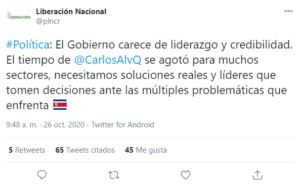 Garnier aseguró que le “parece vergonzoso que la cuenta oficial del Partido Liberación Nacional se haga eco de este tipo de llamados absurdos”.