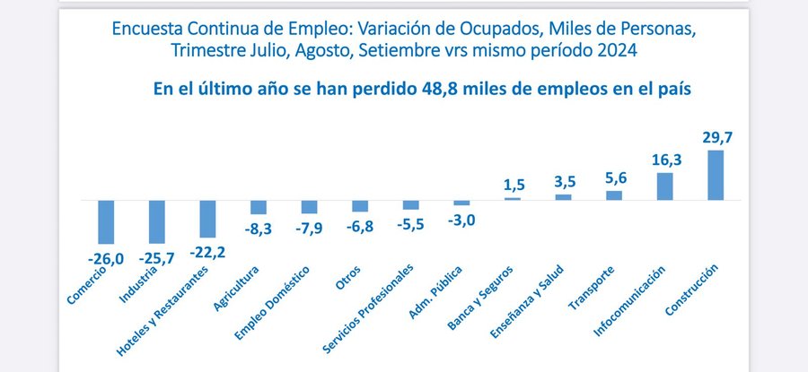 Según Corrales, los datos más recientes de la Encuesta Continua de Empleo del INEC demuestran que en el último año se han perdido 49.000 empleos, y la supuesta reducción en la tasa de desempleo —de 12% a 5,7%— no obedece a la creación de nuevos puestos, sino a la salida de 300.000 personas de la fuerza laboral.