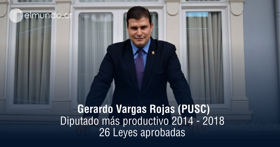 San José, 27 abr (elmundo.cr)- El diputado socialcristiano, Gerardo Vargas Rojas, fue el más productivo de los 57 legisladores del periodo 2014 – 2018, al concretar un total de 26 leyes de la República.