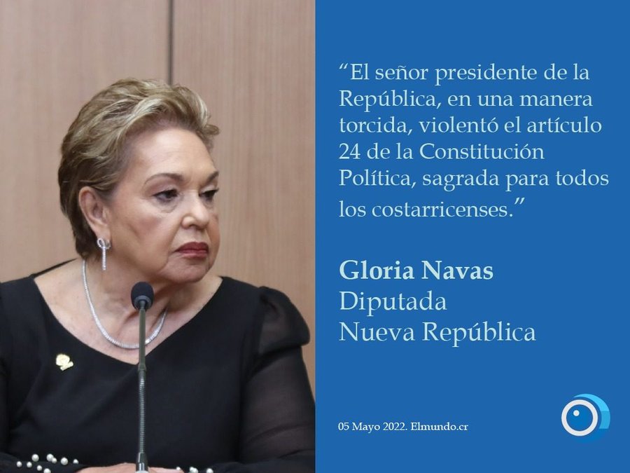 “El señor presidente de la República en una manera torcida violentó el artículo 24 de la Constitución Política, sagrada para todos los costarricenses”, sostuvo Navas.