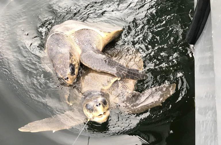 Además de peces, también se encontraban atrapadas dos tortugas lora, una de las cuales estaba enredada en la línea y corría el riesgo de morir al no poder salir a la superficie para respirar.