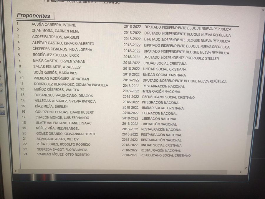 Hasta el momento dicho proyecto cuenta con 24 firmas de legisladores de varias bancadas menos la oficialista, según consta en la página web del Congreso.