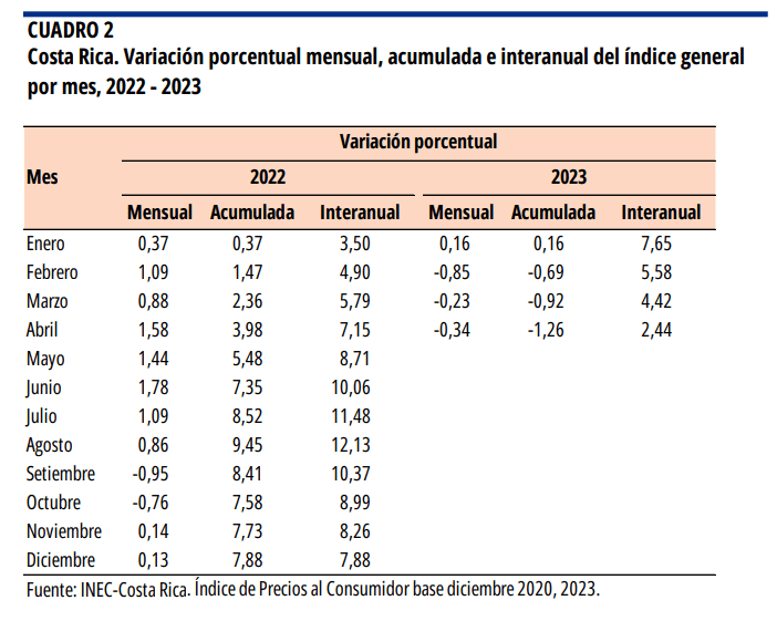 San José, 8 may (elmundo.cr) – El Índice de precios al consumidor (IPC) del INEC bajó 0,34 % en abril 2023, donde destacaron las rebajas en los precios de la gasolina y el diésel. Con este resultado, la variación interanual del índice se redujo a 2,44%.