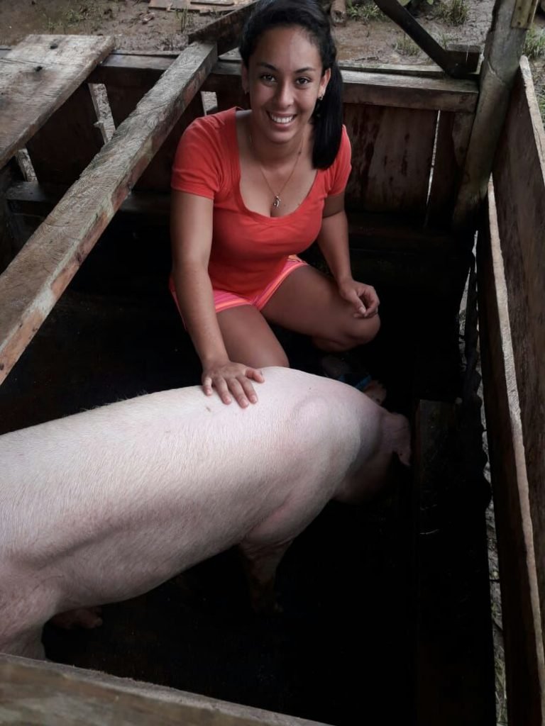 A estos jóvenes se les entregó una cerda de cría con alto potencial genético para establecer una granja porcina con excelente manejo zoosanitario que se adquirieron con fondos del Convenio Interinstitucional entre el Instituto de Desarrollo Rural y el Consejo Nacional de Clubes 4S (INDER -CONAC 4S).