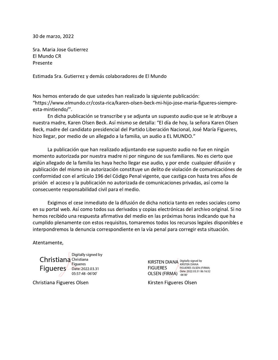 La información aquí publicada, fue retirada a solicitud de miembros de la familia. El Mundo CR respetuosos de la solicitud enviada eliminamos de nuestra base la nota.
