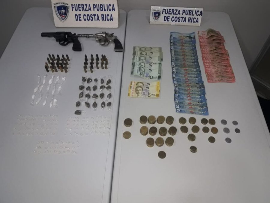 Mientras que en Pavas, San José, lograron el decomiso de dos revólveres, 193 mil colones de dudosa procedencia y marihuana: 21 dosis, cocaína: 15 dosis y crack: 130 dosis