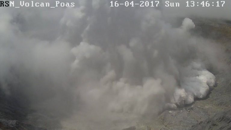 Alajuela, 16 abr (elmundo.cr) – El Observatorio Vulcanológico y Sismológico de Costa Rica, así como la organización Volcanes Sin Fronteras confirmaron que a la 1:46 pm de este domingo se registró una nueva gran erupción en el Volcán Poás.