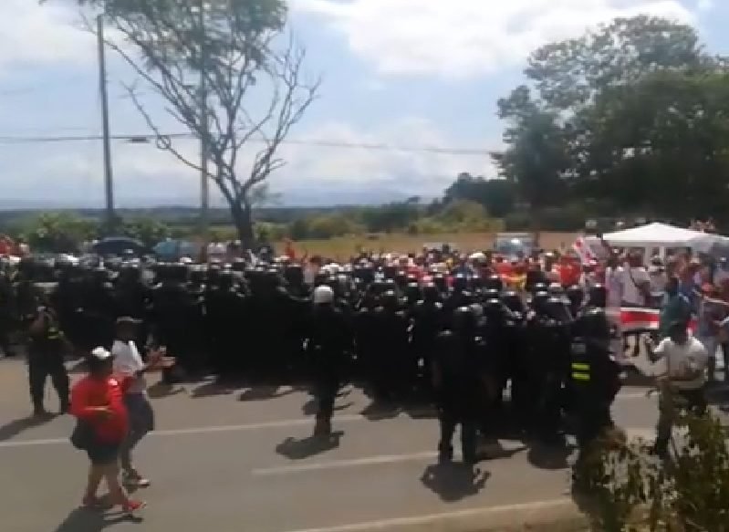 Puntarenas, 15 set (elmundo.cr) – Efectivos de Seguridad Pública intentan disuadir a los manifestantes para que desistan del bloqueo y permitan habilitar el libre tránsito a la altura de Barranca, sobre la Ruta Nacional 1.