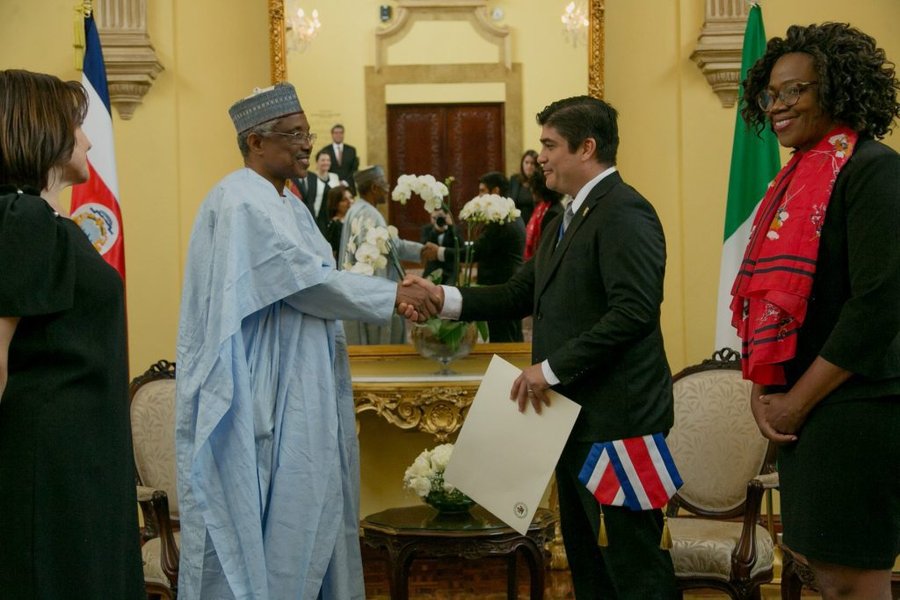 San José, 04 jul (elmundo.cr) – Los nuevos embajadores de Corea, Yoon Chan-sik; de Irlanda, Bárbara Jones; de Pakistán, Tasawar Khan; de Nigeria, Aminu Iyawa y de Zambia, Ngosa Simbyakula, presentaron este miércoles las Cartas Credenciales al presidente de la República, Carlos Alvarado y a la vicepresidenta y canciller, Epsy Campbell, en el Salón Dorado del Ministerio de Relaciones Exteriores y Culto.