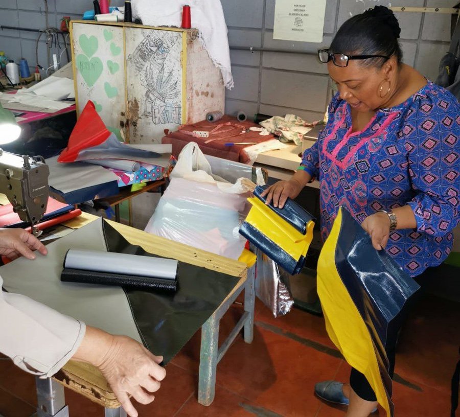 La empresa inició operaciones a mediados del mes de marzo y se dedica a la fabricación de toldos. Su compromiso es trasladar hasta el centro penal, los materiales que sobren de la confección principal y los materiales reciclados de toldos en desuso, para que las mujeres los transformen en bolsos.