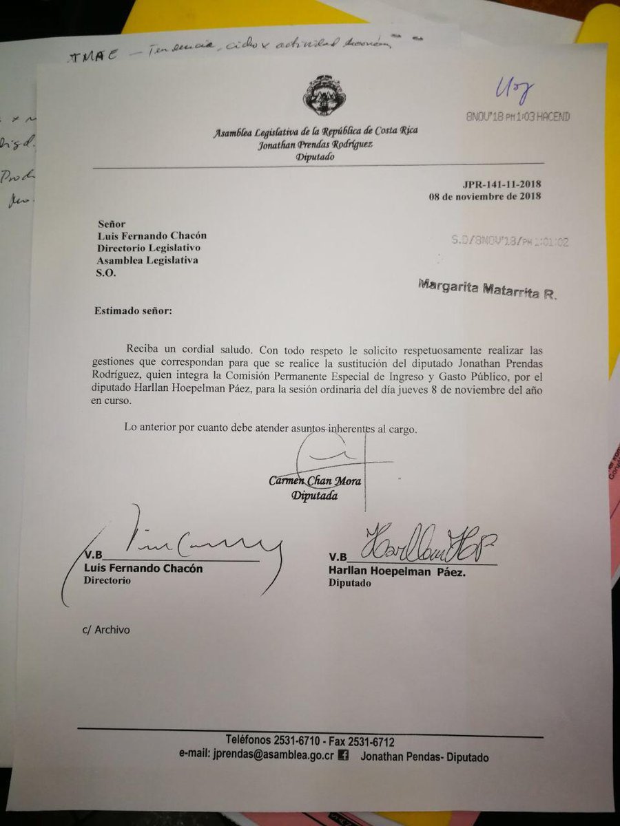 San José, 8 nov (elmundo.cr)- Esta tarde, la Comisión de Control de Ingreso y Gasto Público votó en contra de investigar al presidente de la misma, el diputado Jonathan Prendas.