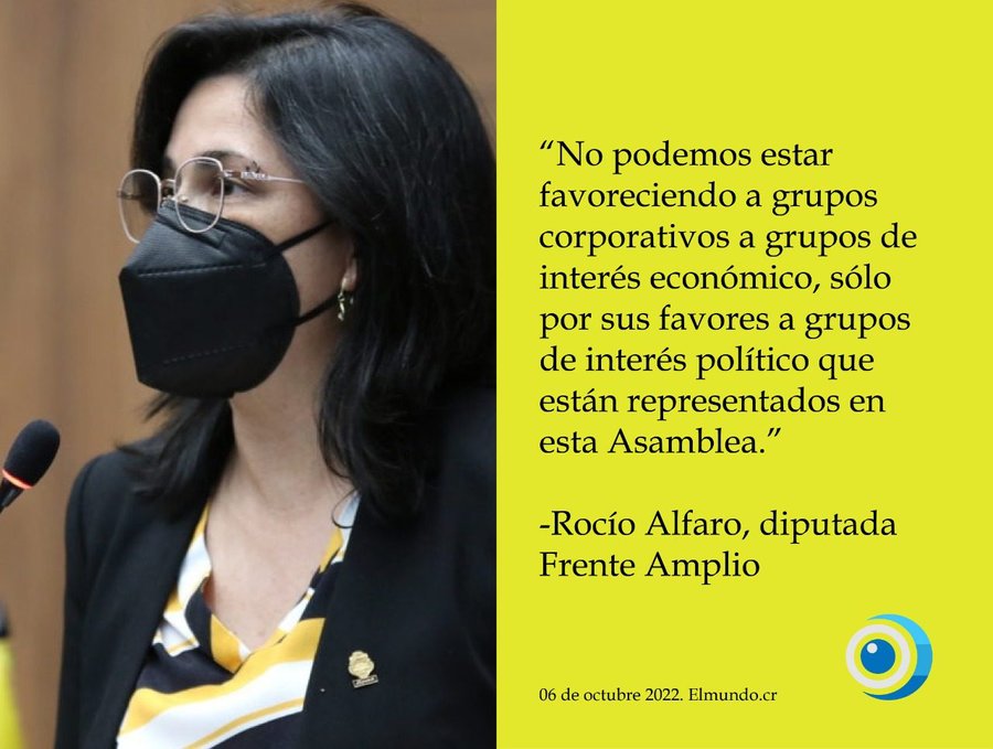 “Yo creo que debemos de tomarnos este tema en serio, no podemos estar favoreciendo a grupos corporativos a grupos de interés económico, sólo por sus favores a grupos de interés político que están representados en esta Asamblea”, concluyó.