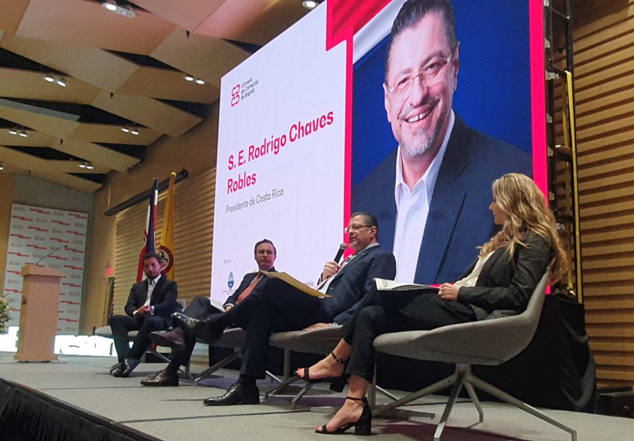 En la actividad, el presidente Chaves invitó a los empresarios a aprovechar las condiciones que Costa Rica ofrece a las empresas colombianas en suelo nacional.