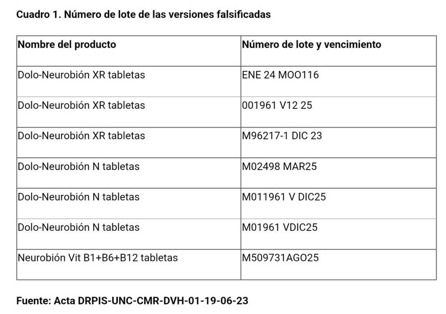 Asimismo aclararon que “a la fecha, los lotes mencionados en esta alerta son los únicos que se han confirmado como falsificados, pero es muy probable que existan otros lotes en el mercado con las mismas características indicadas en las imágenes y tampoco deben ser utilizados”.