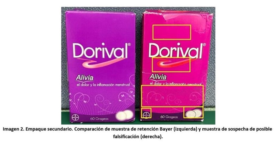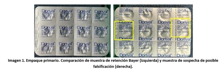 De acuerdo con los resultados obtenidos en la investigación realizada por el laboratorio fabricante Bayer S.A., concluyeron que las muestras de sospecha de posible falsificación nom corresponden a la muestra de retención, encontrándose diferencias significativas en cuanto a impresiones, el diseño del arte aprobado, así como el tipo de material utilizado y contenido del principio activo. Por lo anterior, determinaron que la muestra de sospecha de posible falsificación no corresponde a un producto fabricado en su planta ubicada en Guatemala.