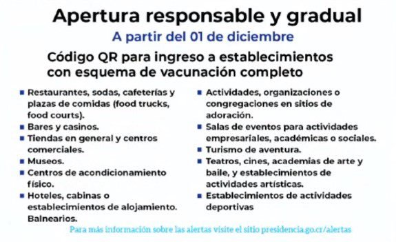 El presidente de la República, Carlos Alvarado, indicó, durante la conferencia de prensa de este miércoles, que “a partir del 1 de diciembre va a ser obligatorio el esquema de vacunación completo y con certificado digital, para acceder a ciertas actividades”.