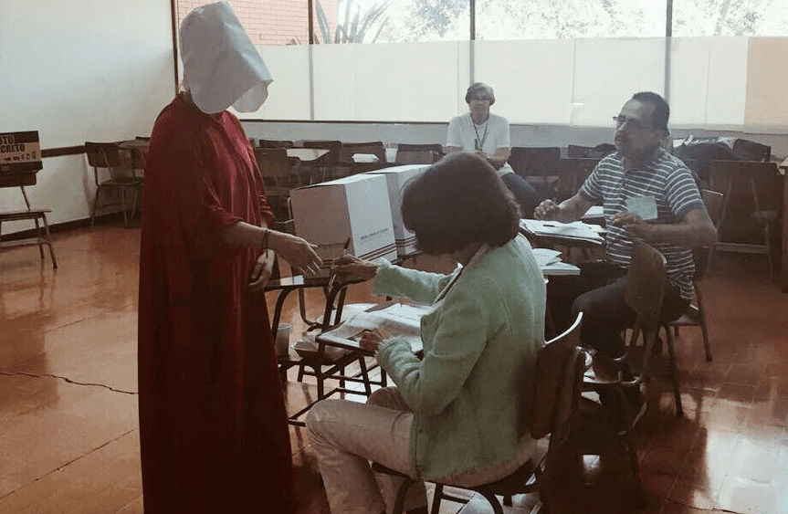 San José, 4 feb (elmundo.cr) – Un grupo de mujeres acudió a votar este domingo vestidas como en la novela de Margaret Atwood, “El cuento de la criada”, para protestar contra el creciente fundamentalismo en el país.