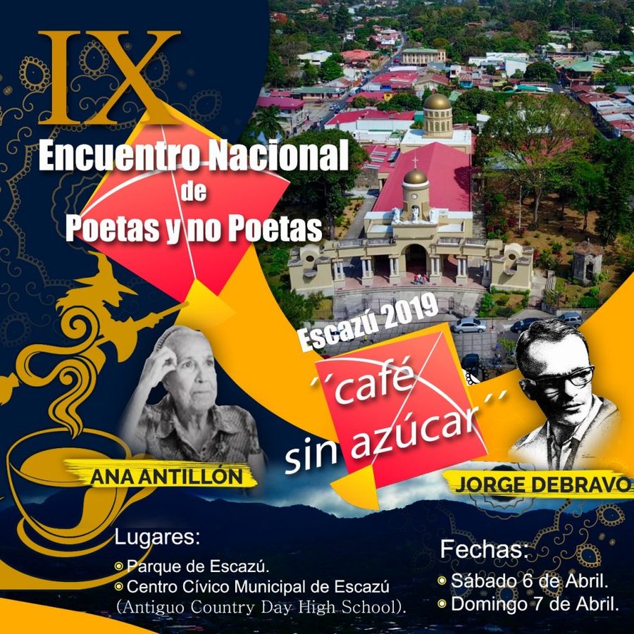 San José, 27 feb (elmundo.cr) – Amar la poesía es el único requisito para formar parte del IX Encuentro de Poetas y no Poetas que organiza el grupo Café sin azúcar. Esta es una actividad que se realiza cada año en distintos lugares del país. Para este 2019, Escazú será el anfitrión durante los días 6 y 7 de abril.