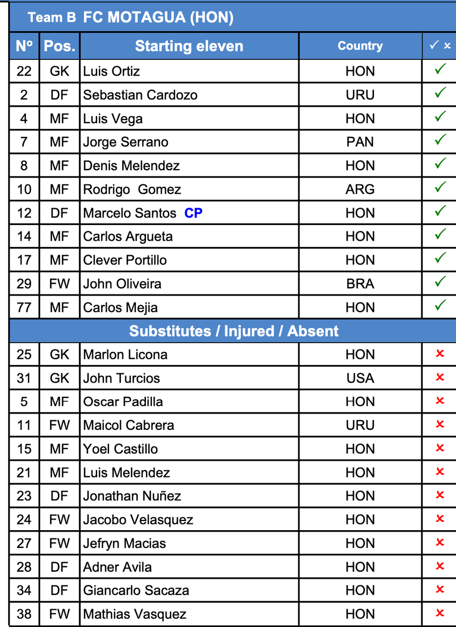 Alineación confirmada de Motagua