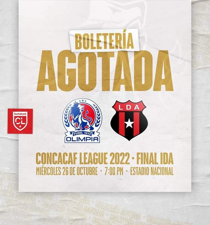 Tegucigalpa, 23 oct (elmundo.cr) – Liga Deportiva Alajuelense enfrentará a Olimpia con un Estadio Nacional de Tegucigalpa que lucirá a reventar luego de que se vendiera la totalidad de las entradas para el primer partido de la final de Liga CONCACAF.