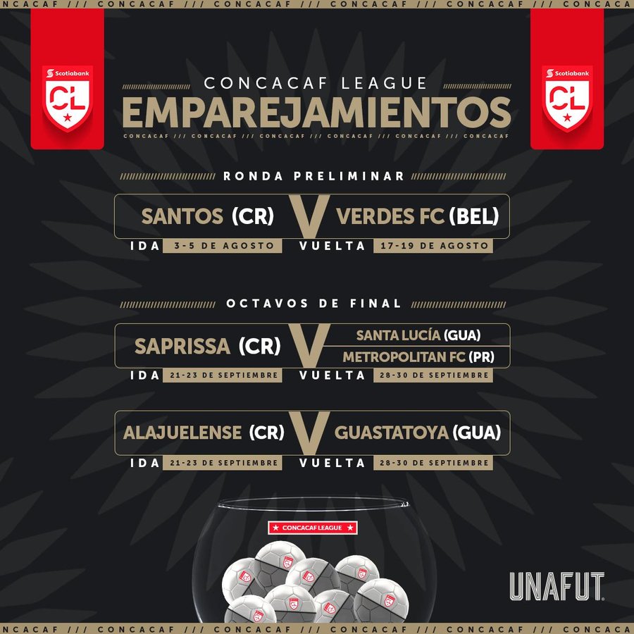 El Santos de Guápiles iniciará su participación en la fase preliminar por clasificarse como Costa Rica 3, los santistas jugarán ante el Verdes de Belice en los primeros quince días del mes de agosto.