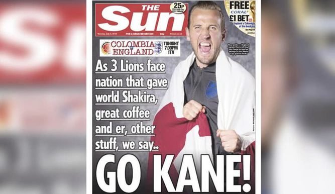 “Go Kane!”, tituló el tabloide en portada, con una foto del delantero estrella inglés Harry Kane.