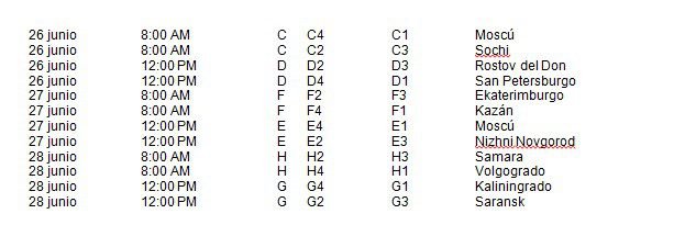 Aunque todavía no se conoce como estarán conformados los grupos para el Mundial, la FIFA publicó un calendario en el que ya se conocen los horarios para los partidos de la fase de grupos.