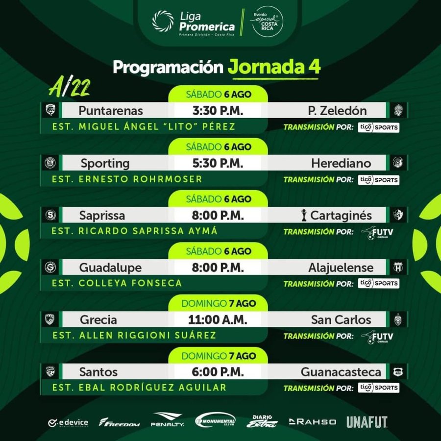 San José, 6 ago (elmundo.cr) – Este sábado 6 de agosto inicia la jornada 4 del Torneo de Apertura de la Liga Promerica 2022 con algunos partidos que se llevarán acabo hoy.