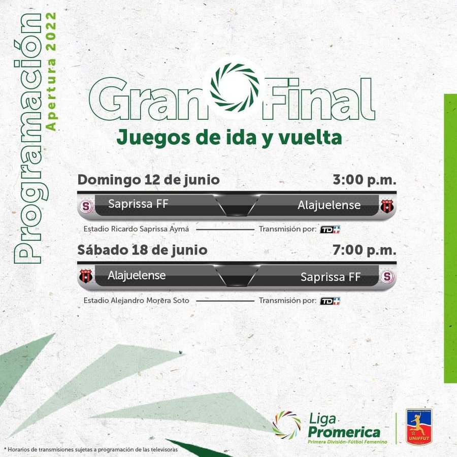 San José, 12 jun (elmundo.cr) – Este domingo 12 de junio se juega la ida de la final femenina del Torneo de Apertura de la Liga Promerica 2022 entre el Saprissa FF y Alajuelense en el estadio Ricardo Saprissa Aymá al ser las 3:00 pm.